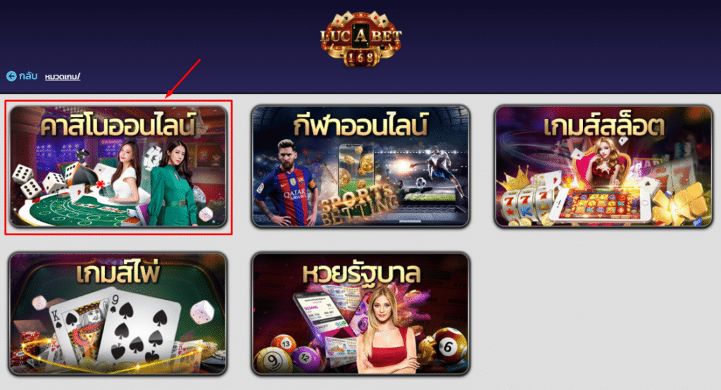 - คลิกที่ปุ่ม คาสิโนออนไลน์ จากนั้นเลือกค่ายเกมบาคาร่าออนไลน์ ที่ท่านต้องการเล่น ในกรณีตัวอย่างนี้จะพูดถึง Sexy Baccarat